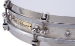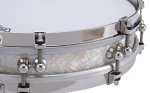 The musical challenges presented were met with a variety of solutions affecting nearly every aspect of the drum's design. First, an extremely compact 13” x 2.5” 8-ply Maple Shell was required for whisper-quiet tone and maximum sensitivity. This unique shell design led to the creation of a new single-point lug system specifically for the Philharmonic Pancake. Next, special modifications were made to Pearl's renowned Triad Silent Strainer, allowing the snare assemblies to be correctly positioned and tensioned against the bottom head while still maintaining the adjustability of the strainer. In addition, new snare assemblies were developed using light gauge music wire in a proprietary graduated tensioning system, altogether creating that signature Pearl out-of-the-box performance quality.